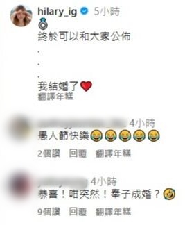 ▲有網民見到莊子璇的帖文,竟然相信她結婚,實則是她愚人節開玩笑。