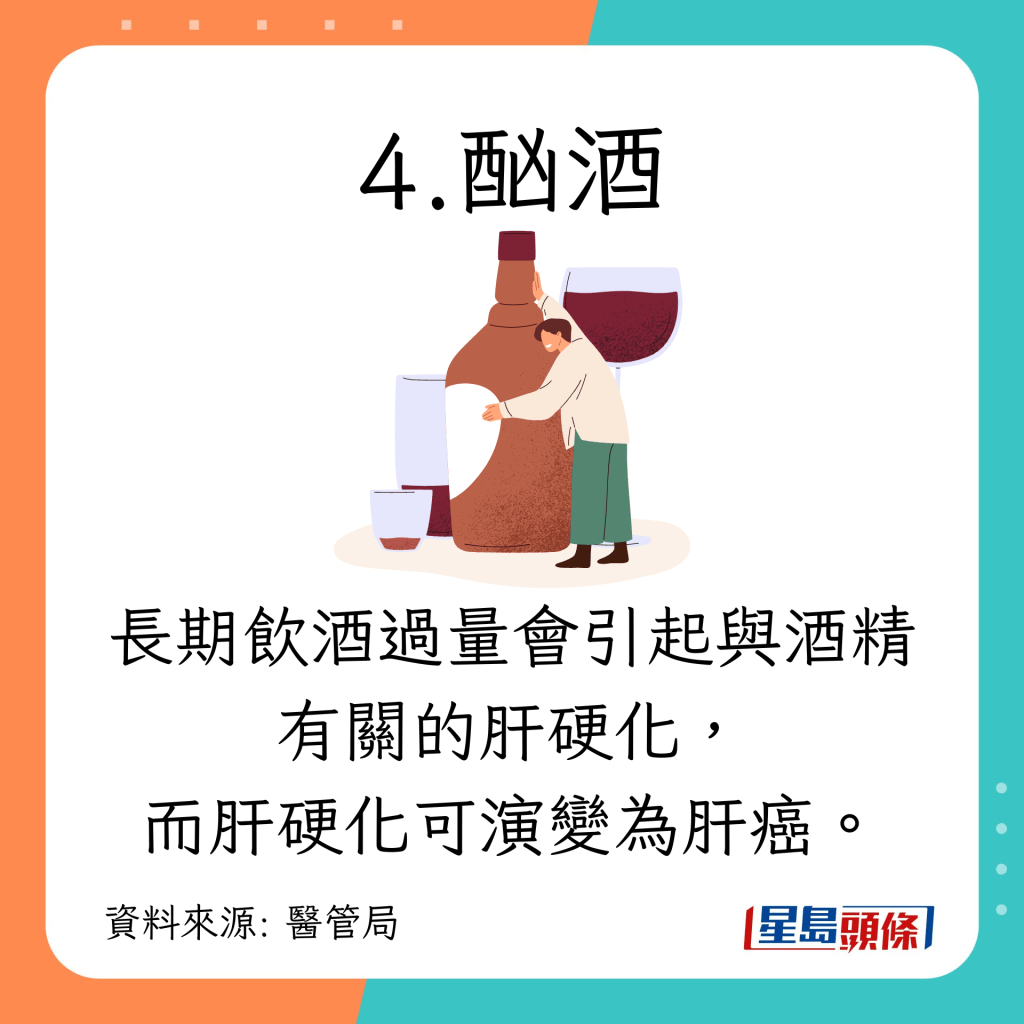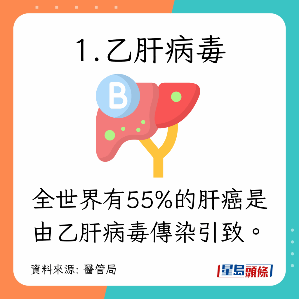 根據香港醫管局資料,肝癌可由于食物當中的1種毒素所引發。8種增加肝癌風險的高危因素如下: