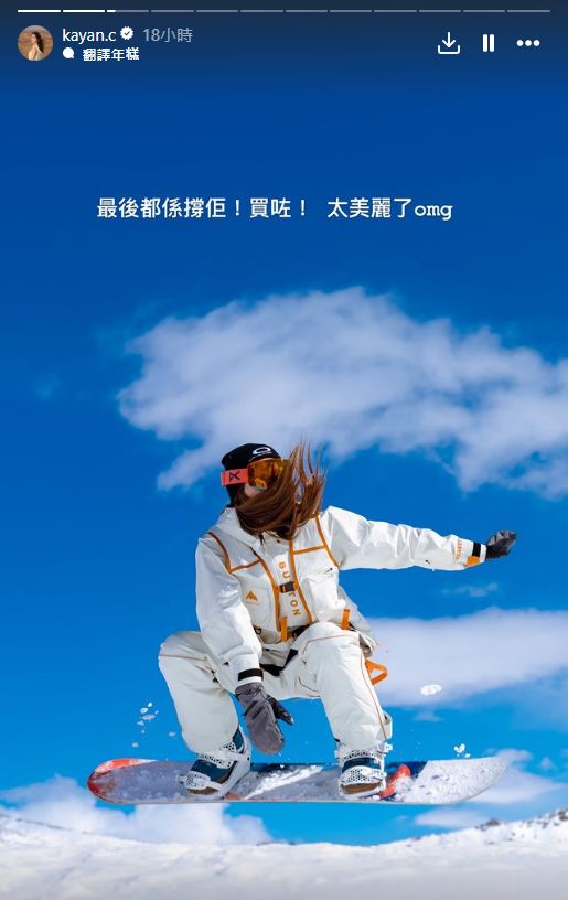 被封“拜金港姐”的2019年港姐五強蔡嘉欣(Kayan),去年12月嫁拍拖7年的富貴男友Derek后更不愁生活,除經常大曬名牌手袋外,亦不時周游列國,近期最愛就是與一班圈中好友四出滑雪。蔡嘉欣最常到的地方是日本北海道,近日則嘗試北上挑戰新疆可可托?;﹫?,其滑雪英姿獲大贊,但其多變的外貌卻再次成為焦點。