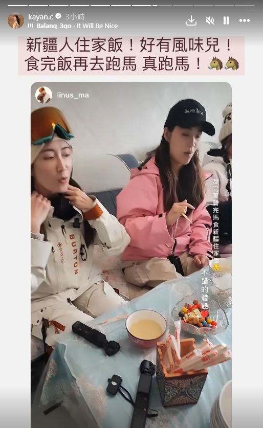 蔡嘉欣近日又拉隊與一班好友到新疆滑雪。