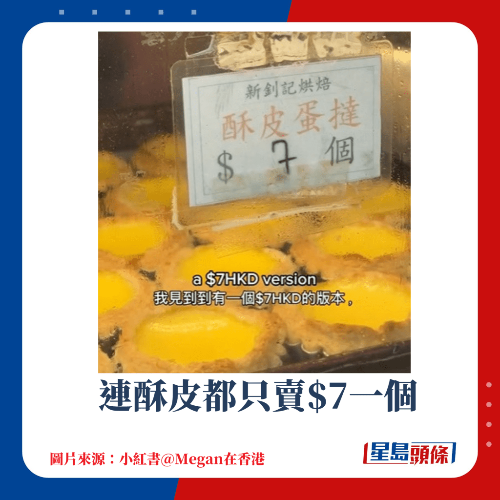 在香港吃一頓飯的價錢越來越貴,要找到平價高質的出品可謂愈來愈難。 位于筲箕灣東大街電車總站附近的“新釗記烘焙”,店內出售的牛油皮蛋撻只是$3/個,雖然價錢便宜但毫不馬虎,有蛋香夠滑溜,就連烘焙步驟較復雜的酥皮蛋撻亦只是$7/個,大受街坊及網民歡迎。 有居于香港的港法混血兒亦曾于小紅書上分享,表示酥皮蛋撻外皮酥脆,與蛋奶凍融為一體,令她甚為驚喜。