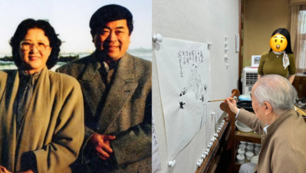 ▲范曾亦分享出愛妻徐萌的照片,見徐萌外型亮麗,有一頭烏黑秀發,靜靜地站在一旁陪伴范曾作畫。