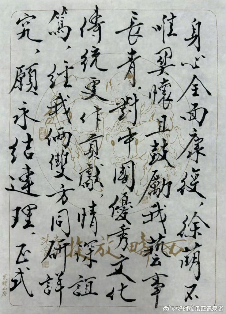 范曾亦分享出愛妻徐萌的照片,見徐萌外型亮麗,有一頭烏黑秀發,靜靜地站在一旁陪伴范曾作畫。