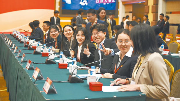 馬英九此行帶著臺灣學子進行兩岸深入交流,行程中赴廣東中山大學、北京大學與大陸學子互動,10日馬習二會現場更從安排中顯示重視訊號。在如此重大會面中,大九學堂的20位臺灣青年學生并未缺席,而是被安排在馬英九后方的顯眼位置。