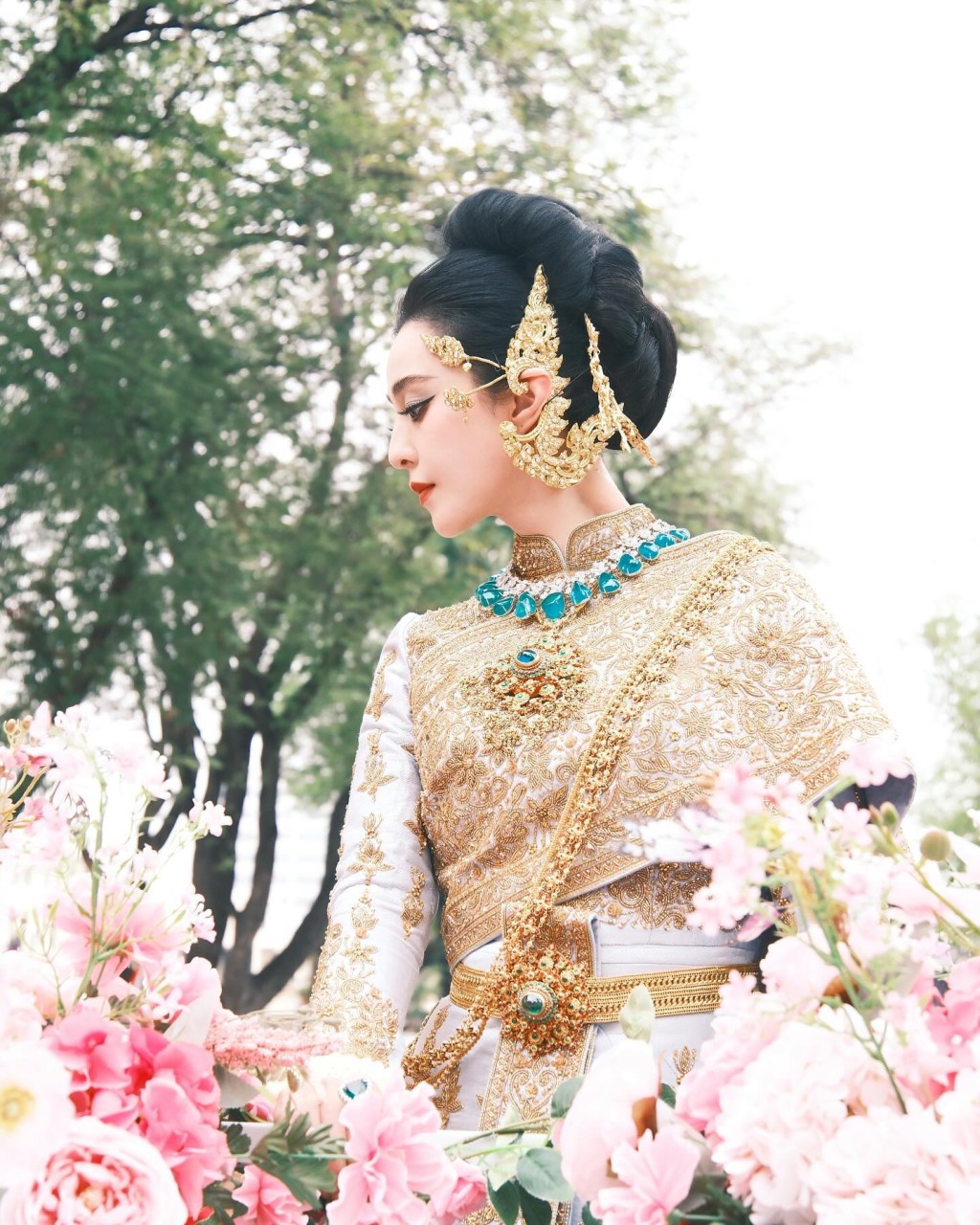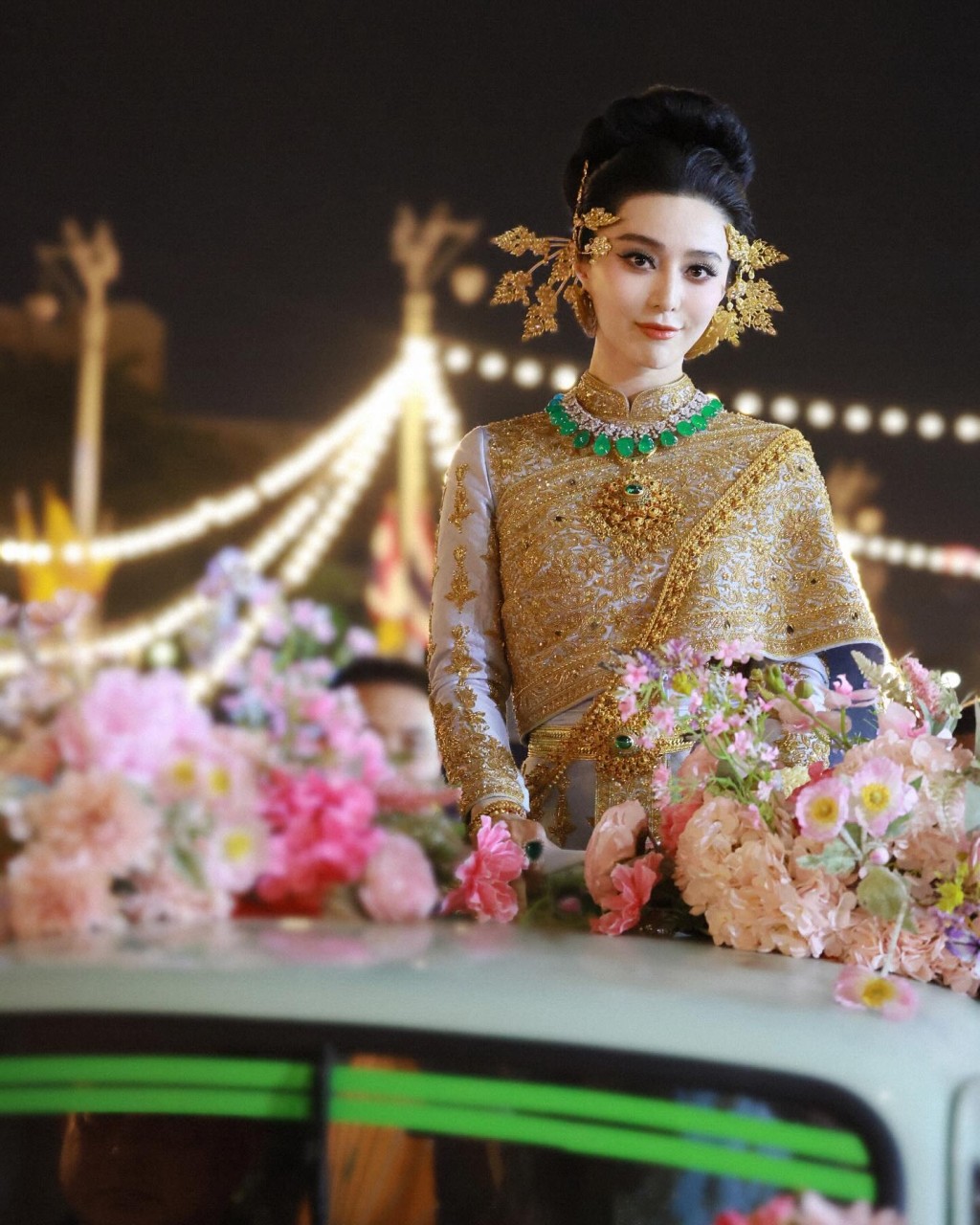 ▲照片中可見,范冰冰穿上泰國傳統服飾,站在車上出巡,擺出不少Pose,泰味十足。