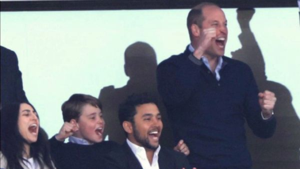 現場拍攝畫面可見,這對父子興致高昂地站在看臺上,當前鋒屈堅斯(Ollie Watkins)進球領先里爾時,2人也激動得站起身,揮拳歡呼,欣喜之情盡顯無遺,而阿士東維拉也沒有讓這對皇室父子失望,最后以2比1贏得比賽。
