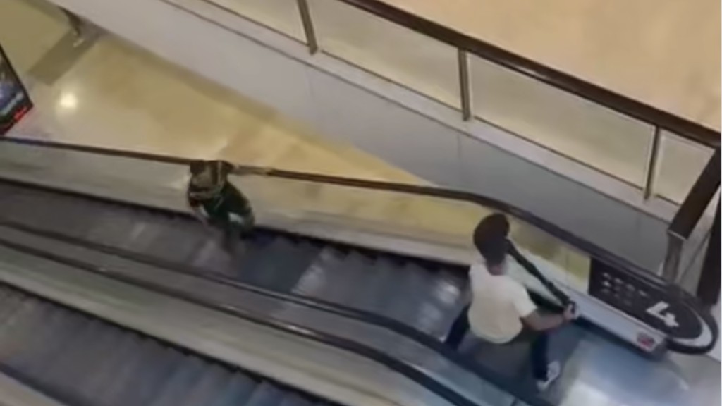 片中兇徒拿著長刀,在扶手電梯正中央,英勇男子側站在扶手電梯上方對峙,舉起類似商場圍欄柱的巨物,還上前1、2步,兇徒因此一度后退。網民大贊這名男子的行為拖延時間,分散兇徒的注意力并阻擋他的路,阻止他移動到商場內其他位置傷害更多人。