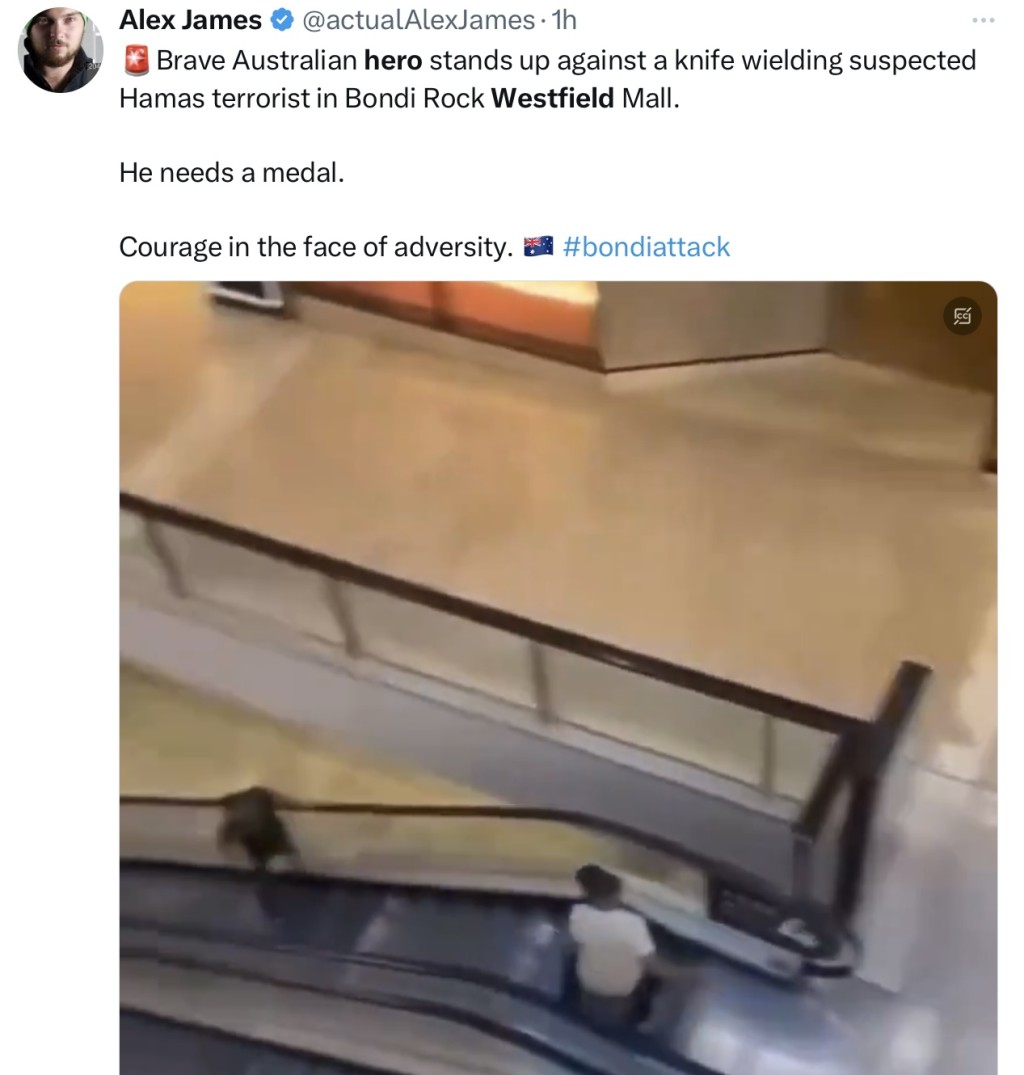 悉尼Westfield Bondi Junction商場發生斬人案,多人死傷,數以百計的購物人士四處逃竄,現場一片混亂。X平臺流傳一段影片顯示,一名男子拿著類似商場圍欄柱的巨物,在扶手電梯上方阻止兇手前進,網民大贊這名男子是“超級英雄”。