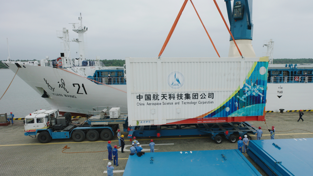 為執行嫦娥6號任務的長征5號遙8運載火箭運抵文昌航天發射場。