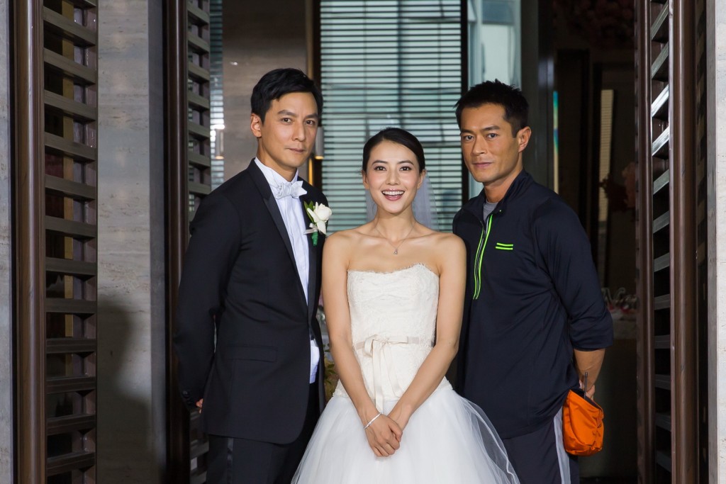 高圓圓因《單身男女》系列為港人熟識,她2014年嫁給臺灣男星趙又廷(右一)。
