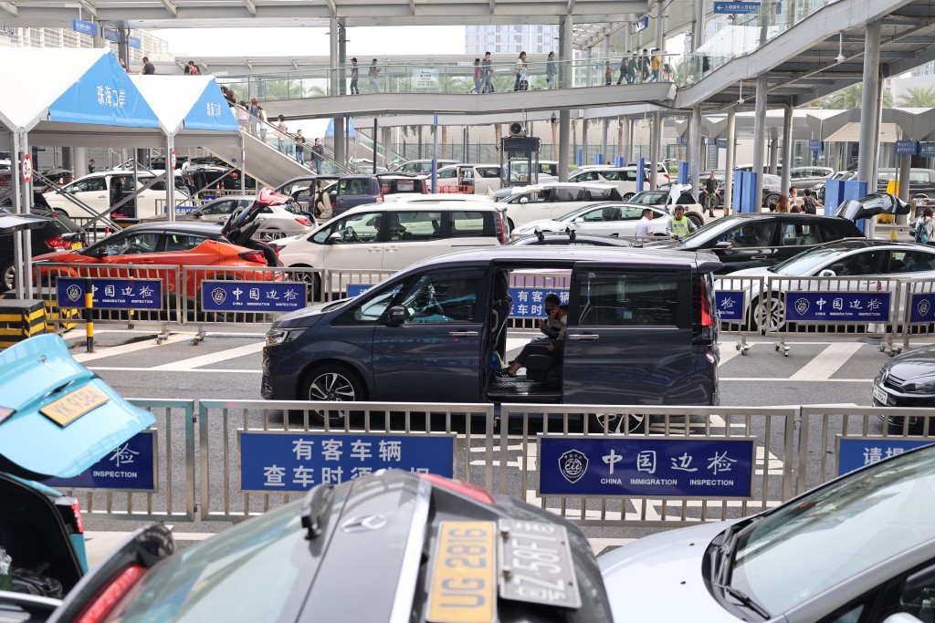 車輛在港珠澳大橋珠海公路口岸等待通關。 新華社