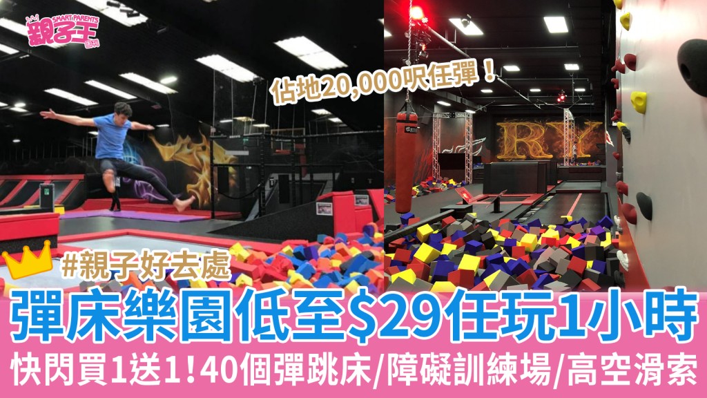 想小朋友放電放得更盡情,玩彈床就是最佳方法!今日(18日)下午3點就有快閃優惠,香港唯一彈床樂園Ryze彈床樂園門票買一送一,任玩一小時人均低至$29,就可于20,000呎彈床樂園盡情跳躍絕對是親子最佳好去處!即看彈床樂園及優惠詳情,即時去搶!