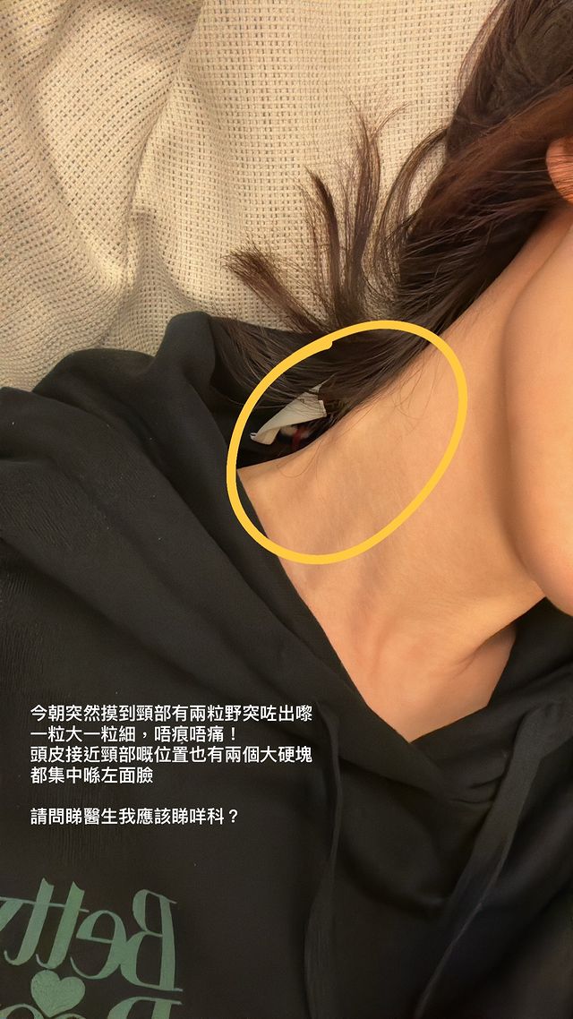 ▲高海寧早前自爆條頸有兩粒東西凸起。