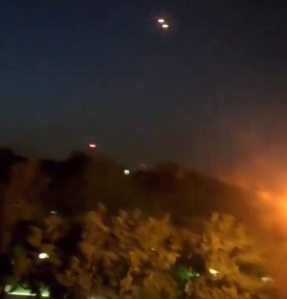 ▲網傳影片指伊朗伊斯法罕和納坦茲附近被以軍轟炸,天空中火光閃動。X