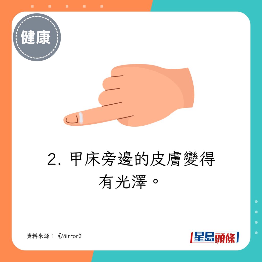 甲床旁邊的皮膚變得有光澤。