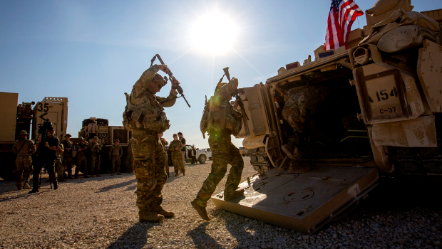 ▲一座美軍駐敘利亞基地21日遭到來自伊拉克的5枚火箭彈鎖定,傳出釀成傷亡。圖為駐敘利亞美軍。美聯社資料照