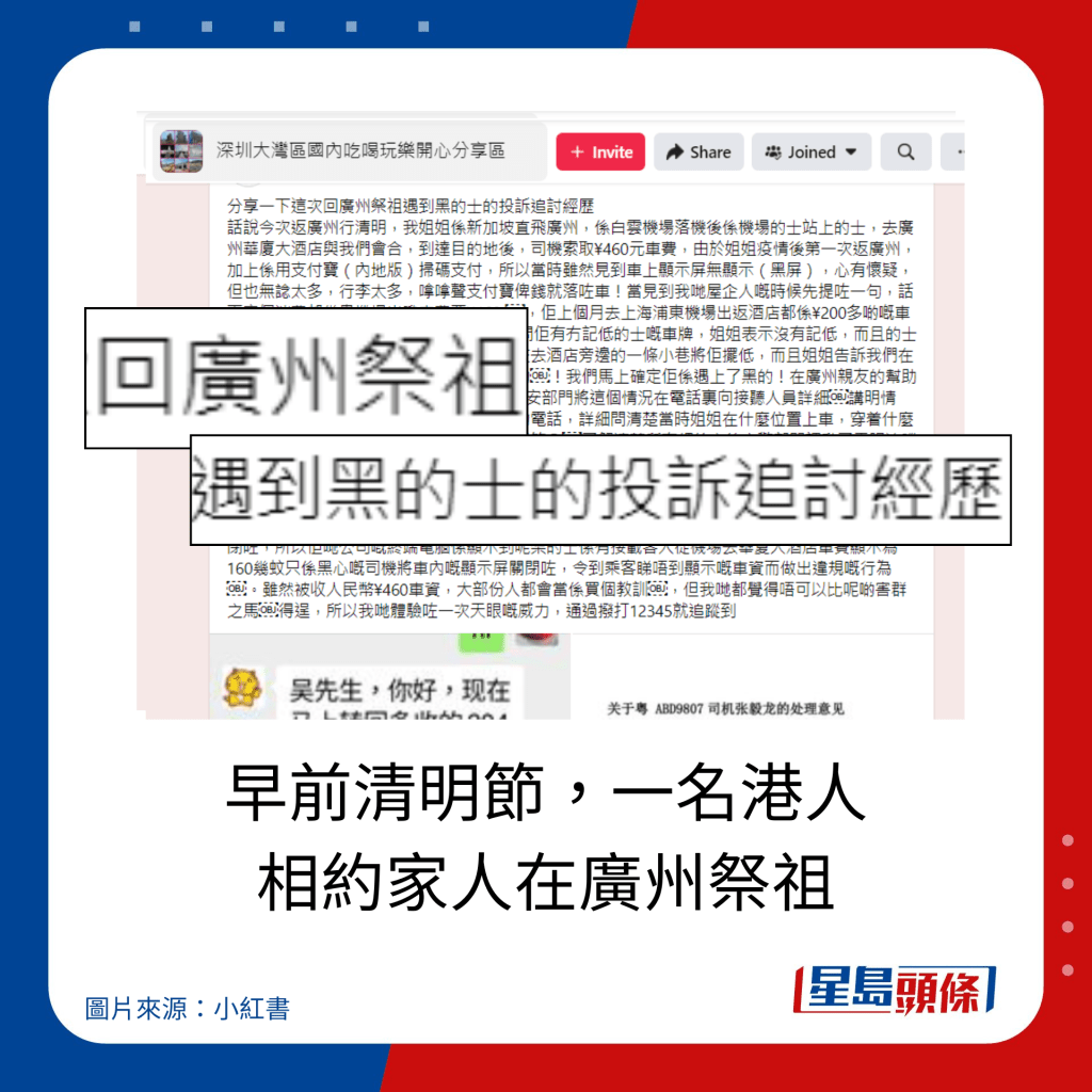 近日一名女士在 Facebook 群組發文,分享她的家人在廣州遇上無良“黑的”的經過。早前清明節,一名港人相約家人在廣州祭祖。他的姐姐獨自一人從新加坡飛廣州,再從白云機場乘的士到酒店匯合。
