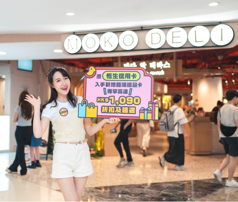 在5月1日起至6月30日期間,更推出“恒生信用卡區區大+FUN”,憑恒生信用卡于MOKO購買新地商場禮品卡,可享高達1,090元折扣及購物禮遇。此外,持有銀聯、AEON、匯豐及中銀信用卡及支付寶的客戶亦可享多重消費回贈,