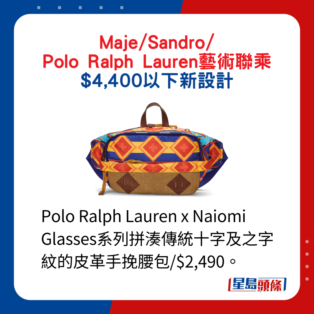 Polo Ralph Lauren x Naiomi Glasses系列拼湊傳統十字及之字紋的皮革手挽腰包