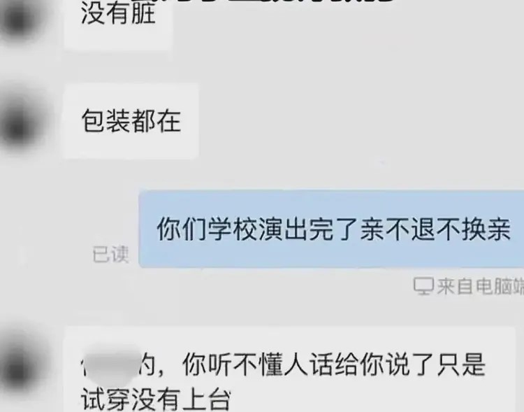據網絡消息,指當地有中學生在電商平臺向出售演出服裝的商家,買了80多套表演服,但日前在演出完畢后,卻出現集體退貨潮。商家認為學生用完演出服表演后集體惡意退貨,更用“差評”作威脅,于是公開事件。