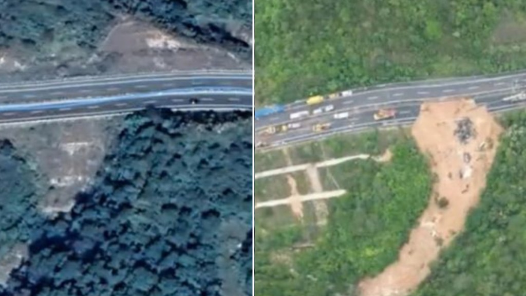 衛星圖對比梅大高速塌陷事前事后慘況。