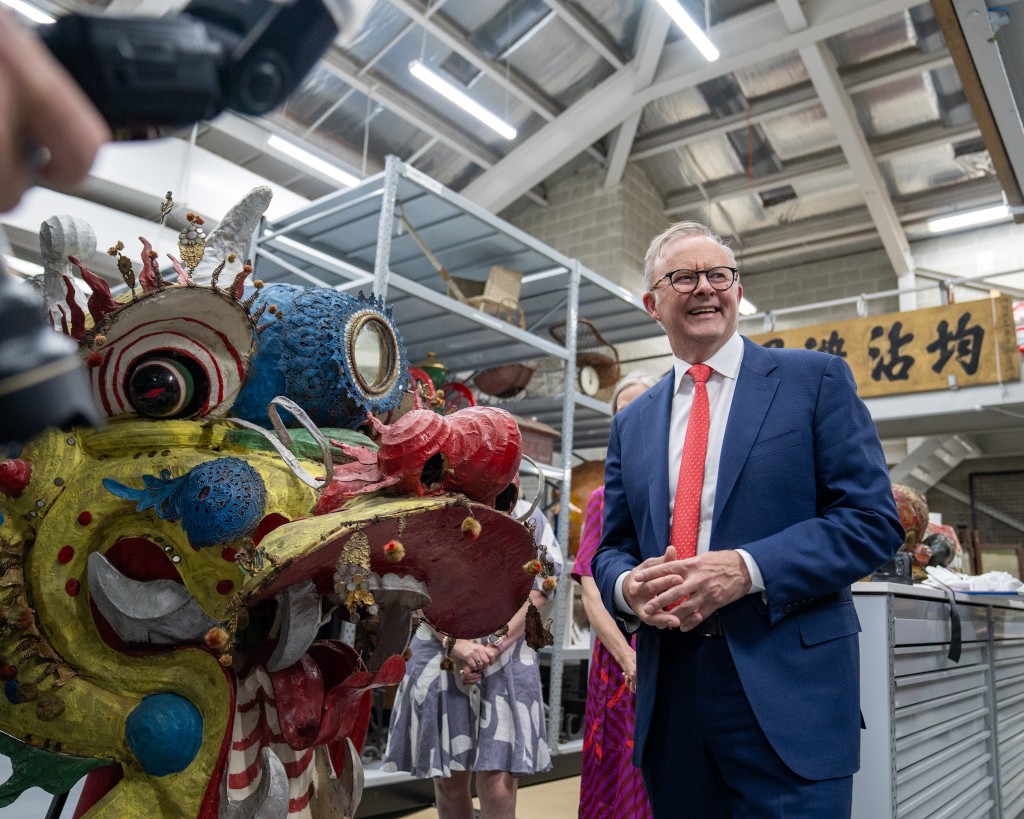 ▲澳洲總理阿爾巴內塞今年2月在中國農歷新年時,特別與金龍博物館的舞龍合照。 X