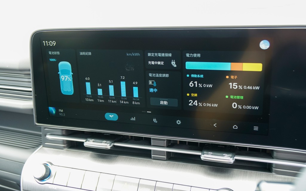 全新Kona EV體積比上代略大,時尚造型延續車系流麗躍動氣息,風阻只有0.27 Cd。一體式Pixel像素化特質從無縫LED頭燈延伸至前后泵把飾件及尾燈,試車還選配19吋Pixel款式鋁合金輪圈(稅前另加$8,800),觀感更悅目?,F代化車廂設計精美,軸距加長60 mm至2,660mm提升前后排腿部空間。標準設備豐富,包括環保皮革座椅與電動冷暖前座、多功能皮軚環、12.3吋觸控顯示屏及12.3吋數碼儀錶板、Connected Car Navigation Cockpit(ccNC)影音娛樂作業系統支援Apple CarPlay、恆溫冷氣連后排風口、電動天窗、USB-C及手機無線充電、220V英式電源插座、全景泊車鏡頭及全套SmartSense主動安全科技等。試車還升級至車內舒適套裝(稅前另加$9,800),座椅以真皮絨面包裹,前與后座分別增設記憶和電暖功能。另尾箱空間也擴大30%至466升,摺疊后座椅可倍增至1,300升,提升實用性。