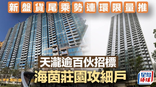 全新盤有待推出市場,新盤貨尾乘勢推出馀貨發售,將軍澳日出康城PARK SEASONS日前加推后,昨日落實于本周六(25日)進行次輪銷售,涉及154伙,折實入場費454.6萬;其他新盤亦加入搶推貨尾,啟德天瀧亦于今日進行新一輪銷售的招標程序,涉及推出118伙標售;九建旗下將軍澳海茵莊園昨日亦發出新一份銷售安排,限量推出20伙發售;新地屯門御海灣II亦限量加推2伙發售。