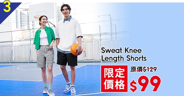 必搶的男裝款式包括:Sweat knee length shorts系列(原價$129,折后只售$99)