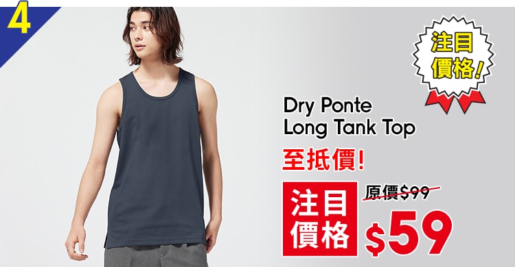 必搶的男裝款式包括:速干運動背心Dry ponte long tank top系列(原價$99,折后只售$59)