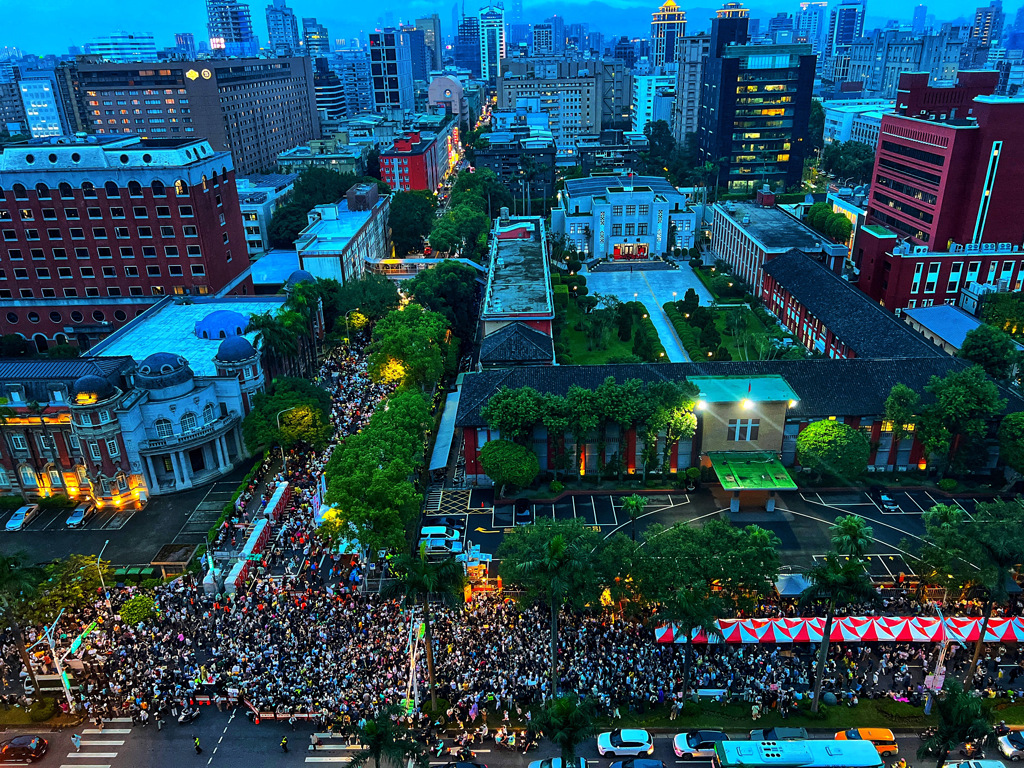 ▲超過50個民團24日號召民眾在“立法院”外青島東路與濟南路集結,接近傍晚,民眾從濟南路沿著中山南路到“監察院”將馬路擠滿 。