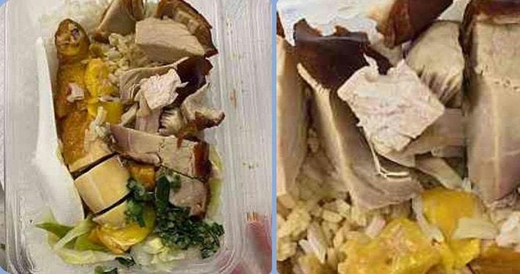 有旅客由香港搭飛機到臺灣,把“燒臘雙拼”飛機餐打包帶入。 臺灣防檢署