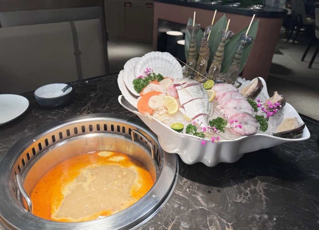 吃慣麻辣鍋、牛肉鍋或椰子雞鍋的朋友,不妨來這間主打海南糟粕醋湯底的邊爐店試試。 糟粕醋是海南的一種傳統醬料,將稻米釀酒后剩余的糟粕發酵而產生的酸醋,加少許辣椒、蒜頭及油等煮開,再制成湯料,最適合配海鮮及鮮雞吃,微辣中帶酸甜,又有幾分酒香,極受海南人歡迎。