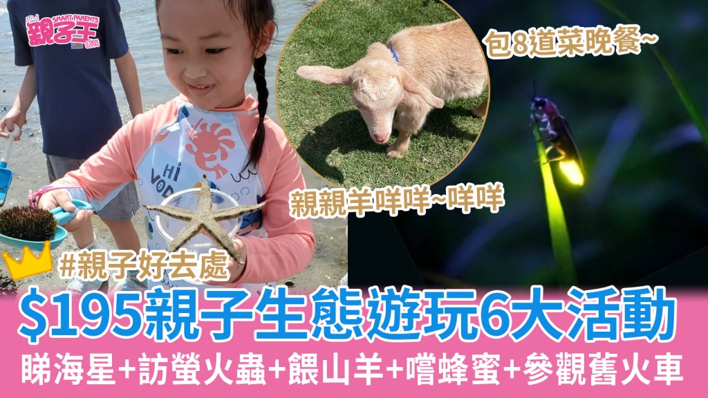 今次優惠本地游將有兩個不同行程,想更認識本地自然生態,跟海星、??娨娒?,就可參加【大埔汀角泥灘海星探索奇趣生態親子體驗一日游】; 而各位小小鐵道迷就推介參加【自然生態螢火蟲探索親子體驗一日游】 ,除了可到有機農莊親身喂飼羊仔、參觀自家茶果工作坊及蜜蜂繁殖場參觀連任食豆腐花,更可到香港大埔火車博物館參觀及導賞,認識香港火車歷史。