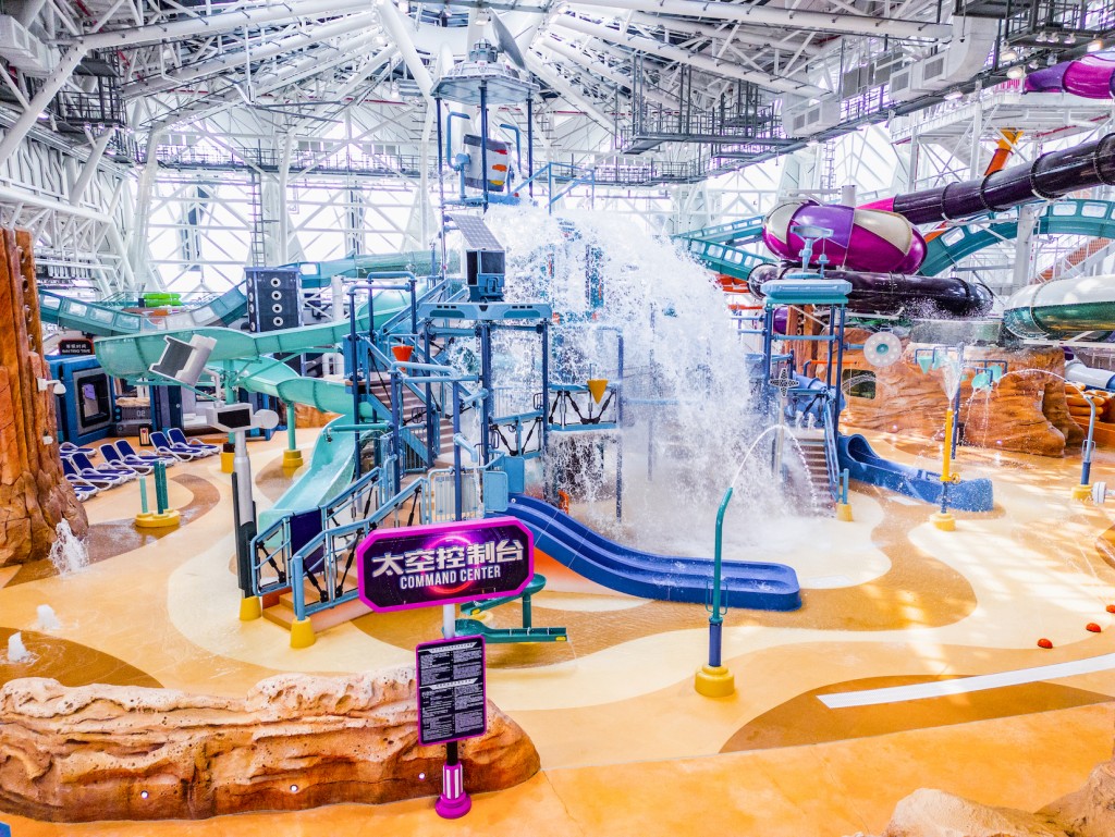 16個以太空為主題的游樂設施,包括結合刺激攀升及沖刺下水的極速水上過山車、全城唯一室內沖浪模擬器,以及7個滑水道設施、2個造浪池、一個橫跨室內室外的“天際星空池”、246米星空激流之旅、以及3.7米深潛水池,同時挑戰平臺跳水及攀巖歷險的“天崖海角”。