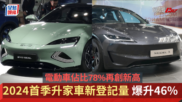 運輸署公布了2024年3月份香港本地車市統計數字,代表2024首季香港本地車壇成績表派發。2024年1月至3月香港累計私家車新車登記總數14,752輛,較2023年同期(10,009輛)大幅增長46.1%,當中電動車的占比高達78%(達11,506輛),相比2023年首季的63.2%顯著攀升。首季新車登記數量大升原因,是政府宣布今年4月起減少電動私家車“一換一”稅務寬減計劃優惠,令很多電動車準買家趕于3月31日前入市,從而刺激新車銷量增長。