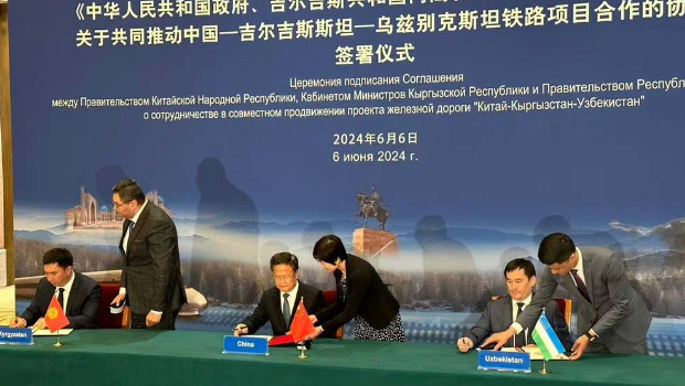6月6日,中國-吉爾吉斯-烏茲別克鐵路項目三國政府間協定簽字儀式在北京舉行,國家主席習近平、吉爾吉斯總統扎帕羅夫、烏茲別克總統米爾濟約耶夫視頻祝賀協定簽署。