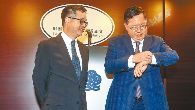 羅文嘉致詞表示,?;鶗苷袌绦袃砂豆ぷ?,任務就是把橋梁架好、把基礎打好,讓兩岸都能夠是雙贏的局面。