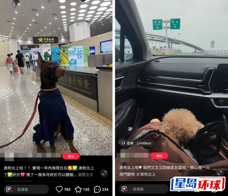 “港車北上”自去年7月1日起推行,香港居民可以自駕方式經港珠澳大橋往來香港及廣東省。直至近日,較香港早幾個月實施的“澳車北上”有突破性放寬,符合條件的澳門居民可攜帶貓、狗等經橫琴口岸進入澳門,便利了當地居民往返琴澳生活。有關措施引起香港網民討論,不少寵物主人表示,希望能與家中“毛孩”一同北上旅游,更揚言期望“港狗北上”或“港貓北上”的出現,能讓他們延長在內地游玩的時間,“平時就是放不下狗只在家才不北上過夜!”