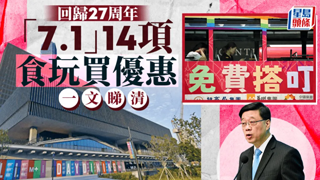 今年是香港七一回歸27周年。港府行政長官李家超今日(11日)出席行會前見記者時,公布部分七月一日回歸優惠,包括食玩買行優惠,更多優惠將會陸續公布。
