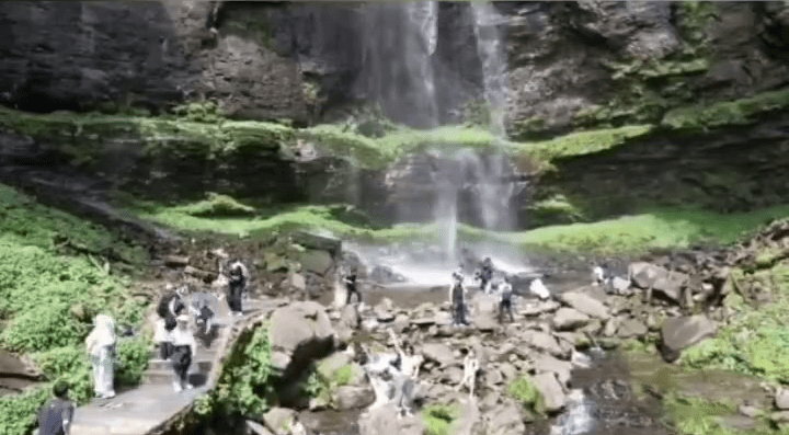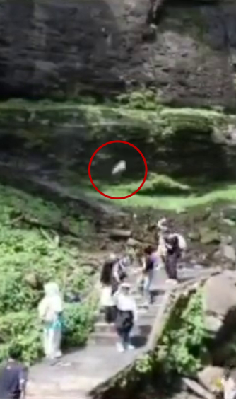 網傳影片可見,在一處瀑布景點下,有不少游客正在拍照。突然,從高處掉落的一塊石頭擊中一名背著包的長發游客,將其擊倒在地。其身邊的多位游客被這一幕嚇到驚慌失措,原本在瀑布下觀景和拍照的游客趕緊離開了現場,一位男游客查看了被擊中的游客情況,并拿出電話疑似報警。