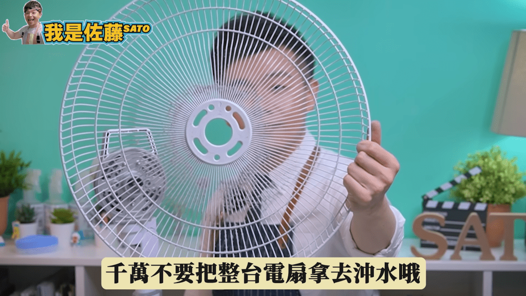 ▲佐藤又提醒,如風扇上布滿灰塵,切勿用水清洗風扇,否則容易導致生銹,甚至會出現漏電危機(截圖來源:我是佐藤SATO@YouTube)