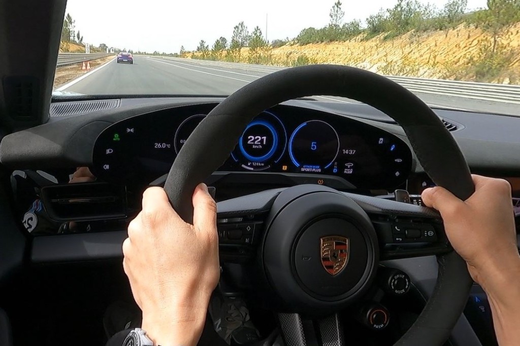 ▲保時捷Porsche Taycan Turbo GT with Weissach Package在賽道直路車子輕松跑上221km/h。