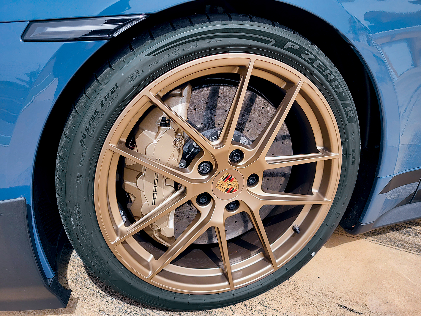 ▲21吋鍛造輪圈、P Zero R輪胎及碳陶瓷煞車碟均是Weissach Package專用項目。