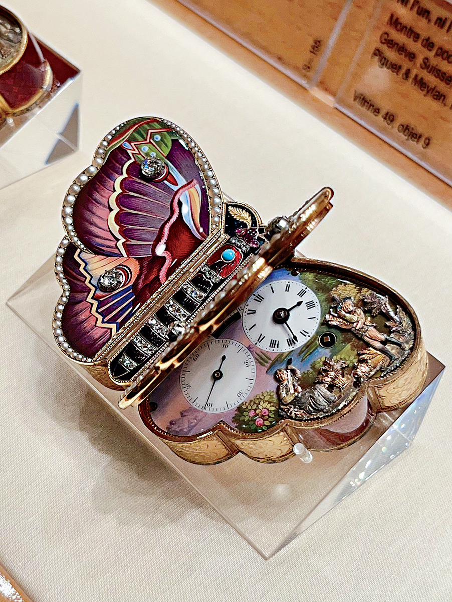 ▲1820年制的蝴蝶造型微繪工藝寶石裝飾時計作品。