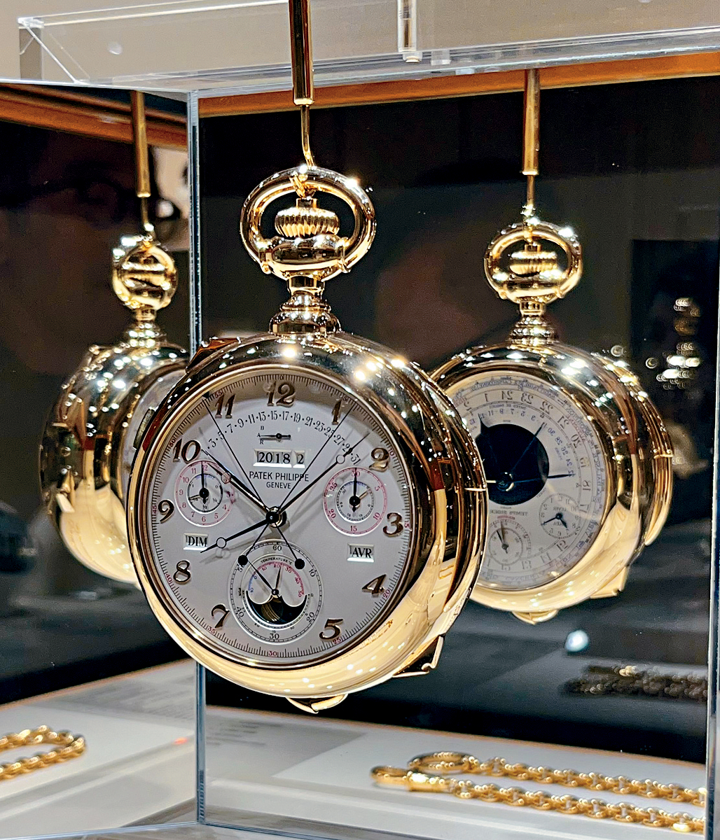 最后走到2樓,主打展品正是1839年至2000年后的百達翡麗鐘表作品。在此樓層可欣賞到品牌創業之初的珍貴時計,其中的袋表及墜子表作品,展現出雕刻、琺瑯及寶石鑲嵌等多樣化的優卓工藝。品牌多年來吸引無數皇室貴族青睞,是以展品中亦不乏他們向品牌訂購的獨特時計。吸引表迷細賞的還有品牌的復雜功能作品,例如1925年面世,即最早的萬年歷腕表、雙時區及世界時間腕表、三問表、計時秒表、陀飛輪時計、天文時計,以及集多項功能于一身的頂級復雜功能時計等,都是令人目不暇給的精彩珍品。