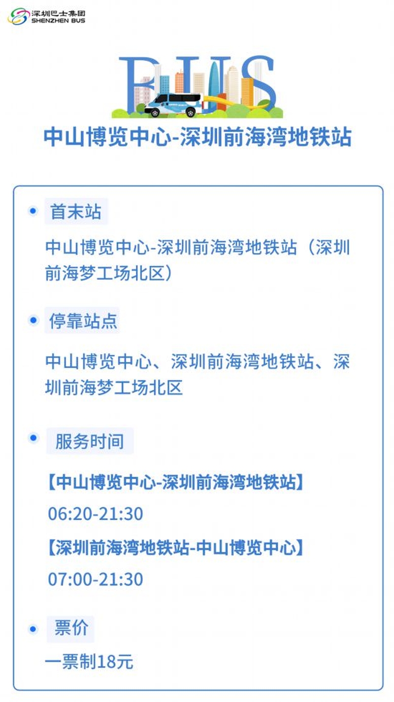中山博覽中心 — 深圳前海灣地鐵站(深圳前海夢工場北區),單程票價18元。