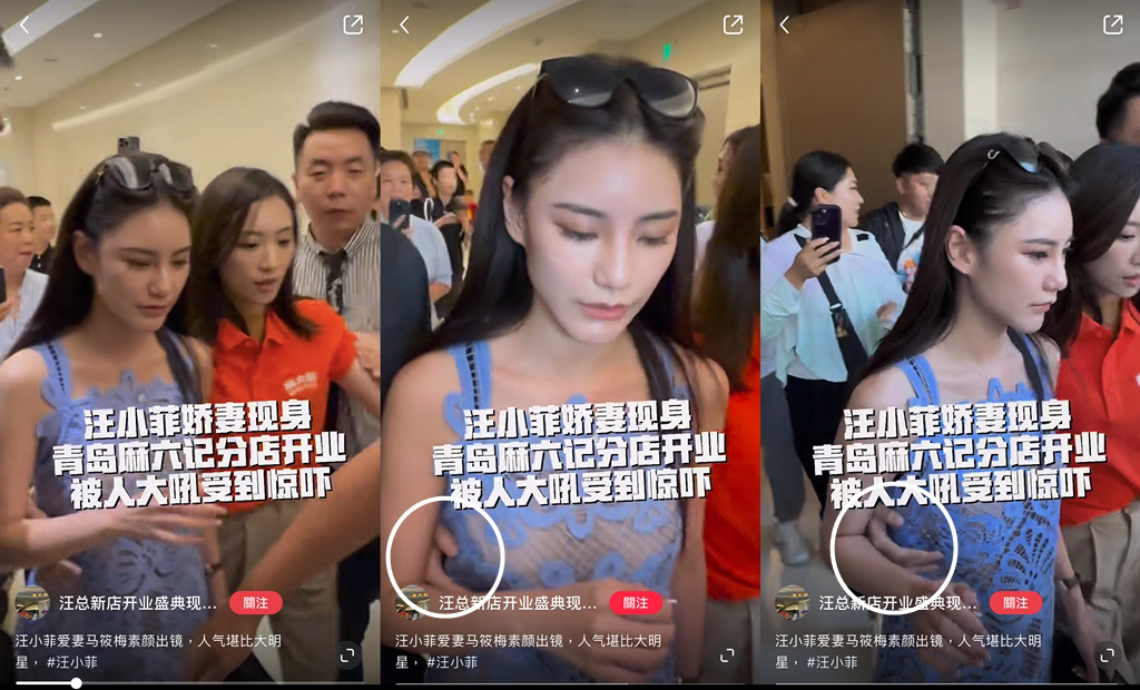 大S前夫汪小菲今年5月與馬筱梅(Mandy)領證結婚,兩人婚后不僅一起拜見了張蘭,Mandy更夫唱婦隨陪汪小菲四處跑沖刺事業。近日汪小菲的餐廳在青島開幕,Mandy現身引來大批民眾簇擁,讓她一度嚇到尖叫,而護送她的女助理似乎不小心手碰到她胸部,也讓Mandy表情有點尷尬。