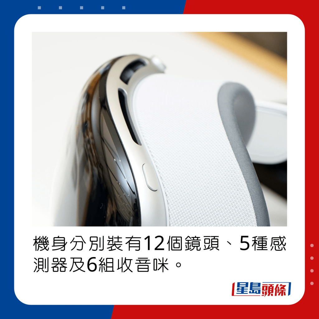機身分別裝有12個鏡頭、5種傳感器及6組收音咪。