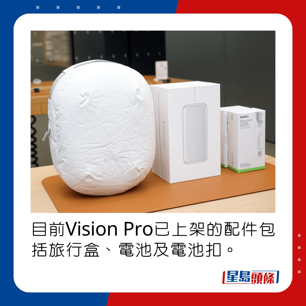 目前Vision Pro已上架的配件包括旅行盒、電池及電池扣。